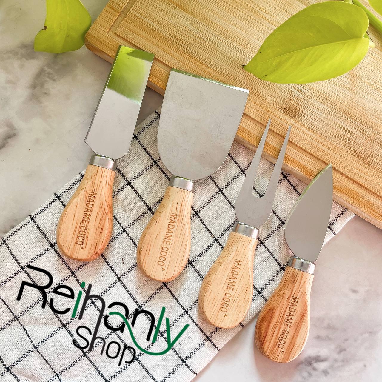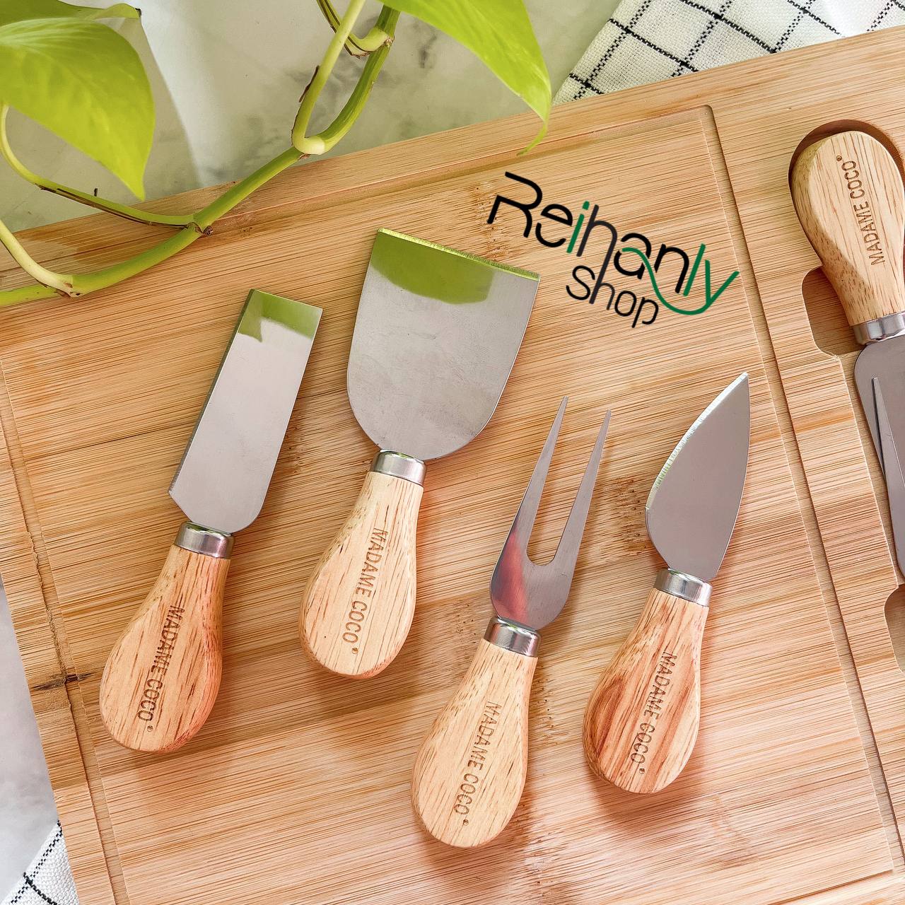 ست 4 تیکه ابزار صبحانه برند مادام کوکو جنس دسته بامبو جنس تیغه استیل قابل شست و شو و ضد اب ارتفاع:12.5 سانت مناسب سرو صبحانه و سینی مزه وارداتی